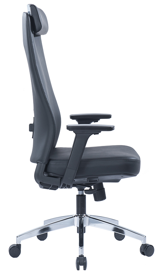The Atlas High Back Ergonomic Leather Office Chair in black combines luxurious comfort and modern design for a professional workspace. Featuring a black PU headrest and a black PU frame with adjustable lumbar support, this chair ensures optimal comfort and support for long hours of sitting. The 4D adjustable armrests allow for complete customization, offering flexibility in all directions. The 3-lock mechanism provides personalized reclining positions, while the 100#4 black gaslift ensures smooth height adjustments. The chrome base adds a touch of elegance, and the nylon casters offer easy mobility. This chair is the ideal combination of style, durability, and ergonomic design.