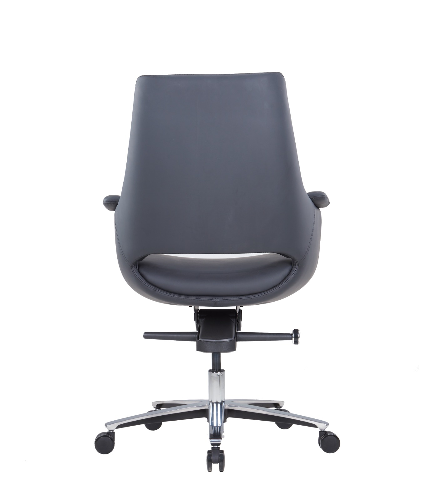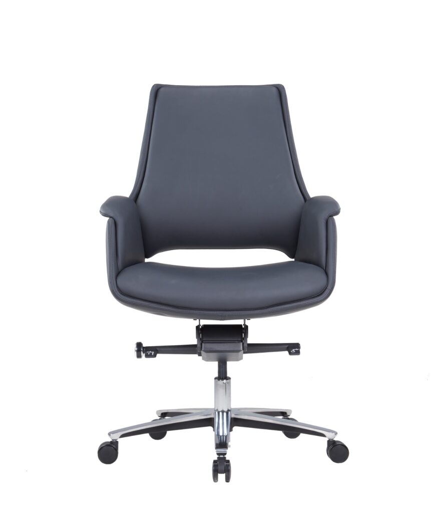 The Strato Executive Medium-Back Leather Office Chair combines style and functionality for a premium seating experience. Upholstered in high-quality PU leather, it offers both durability and comfort. The seat features an 18mm double board for added strength, while the four-position tilting mechanism allows for personalized reclining. Equipped with an 85#4 black gas lift, the chair provides smooth height adjustments. The aluminum base adds a modern touch and stability, while the 65/25 PU casters ensure smooth, quiet mobility. Perfect for executive offices or any professional workspace.